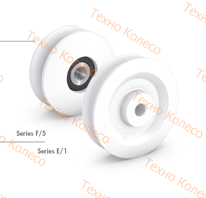 Двухребордные колеса из высокачественного термопластичного полиамида, шариковые подшипники в ступице колеса (/5).