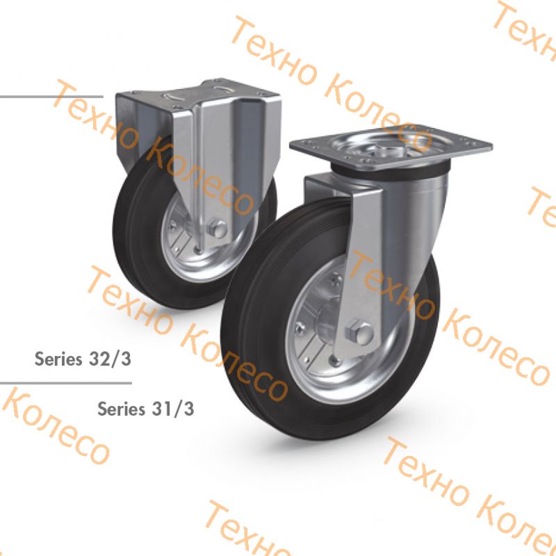Промышленные колесные опоры серии 31/3 (поворотные) и 32/3 (неповоротные)