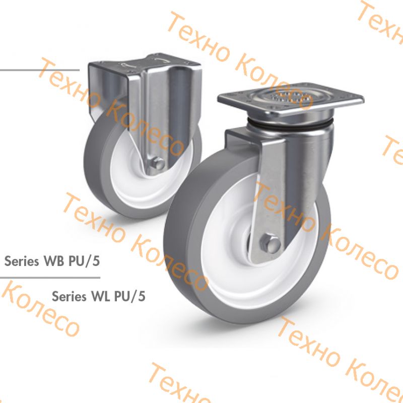 Большегрузные промышленные колесные опоры серии WL PU (поворотные) и WB PU (неповоротные)
