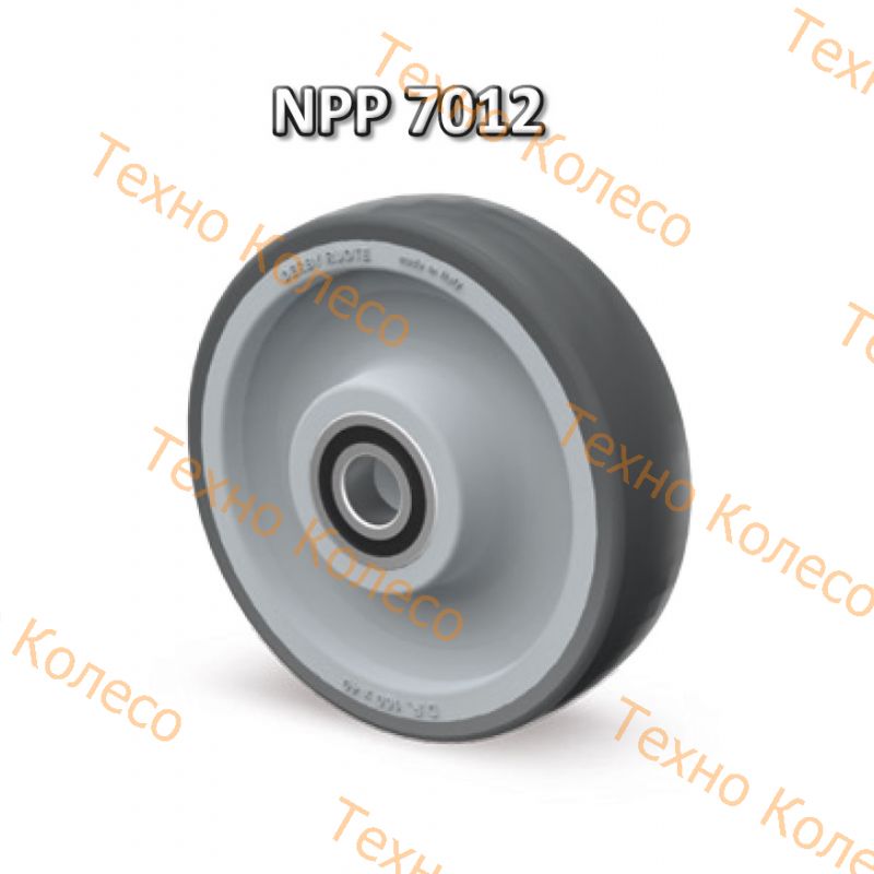 колесо серии NPP 7012 - Основание колес из полиамида, контактный слой из литого под давлением полиуретана серого цвета (твердость 95 Шор А). Прецизионные шариковые подшипники в ступице колес.