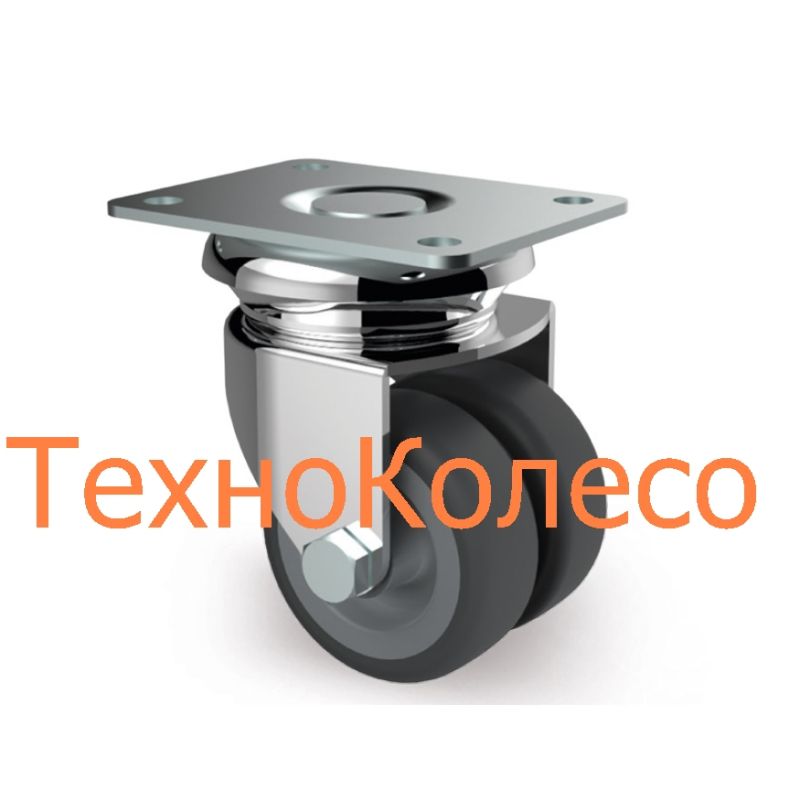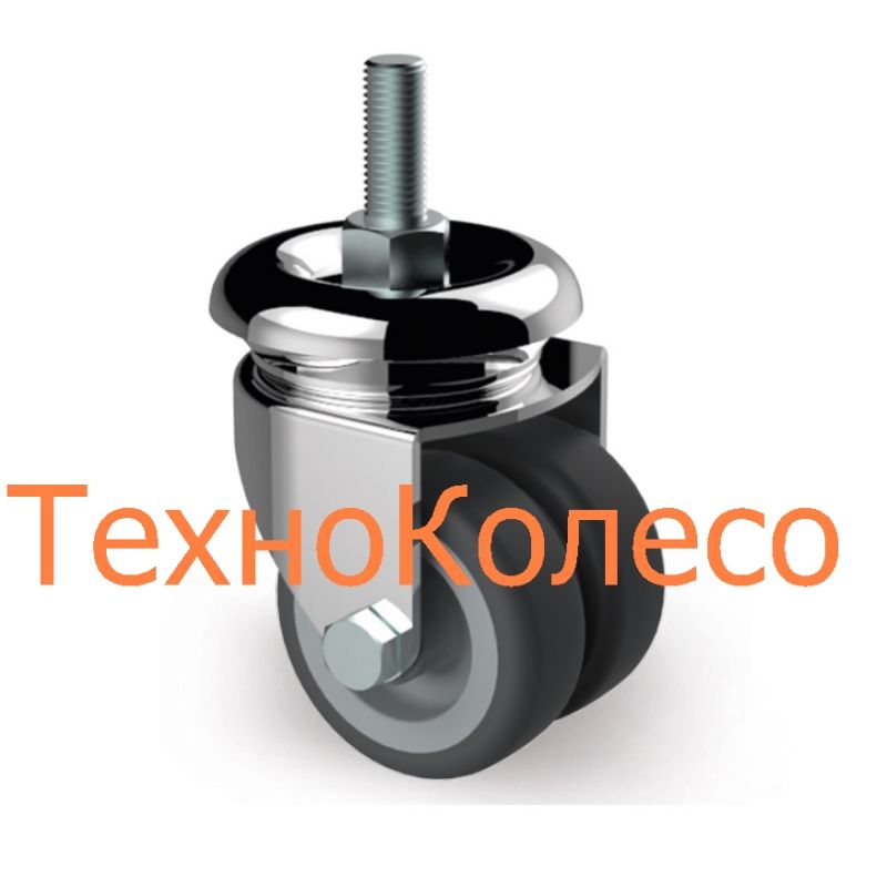 Gemellata cromata. Сдвоенные колесные опоры для помещений из хромированной стали. Кронштейн из штампованной хромированной стали, двойной усиленный шариковый подшипник в поворотном узле.