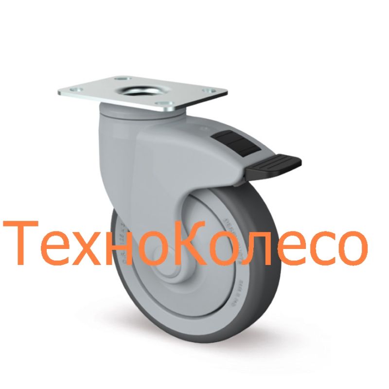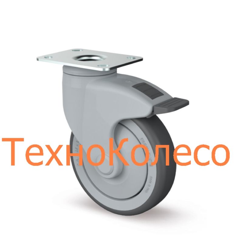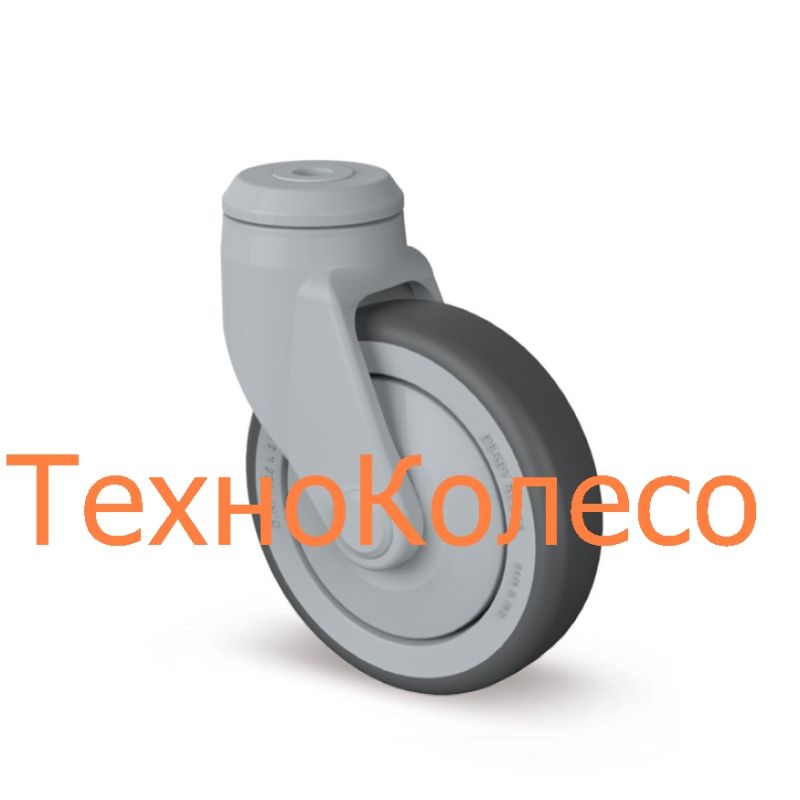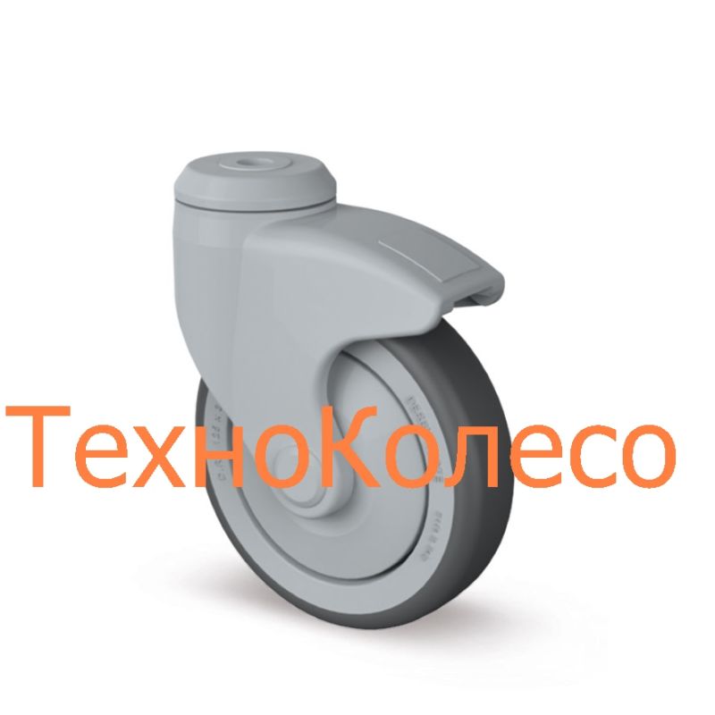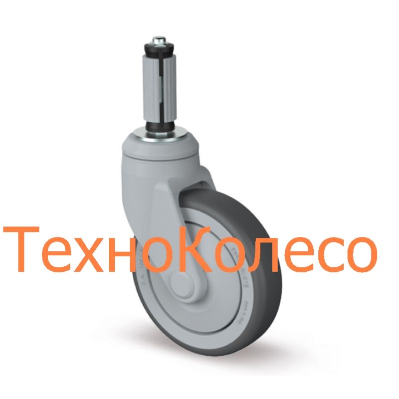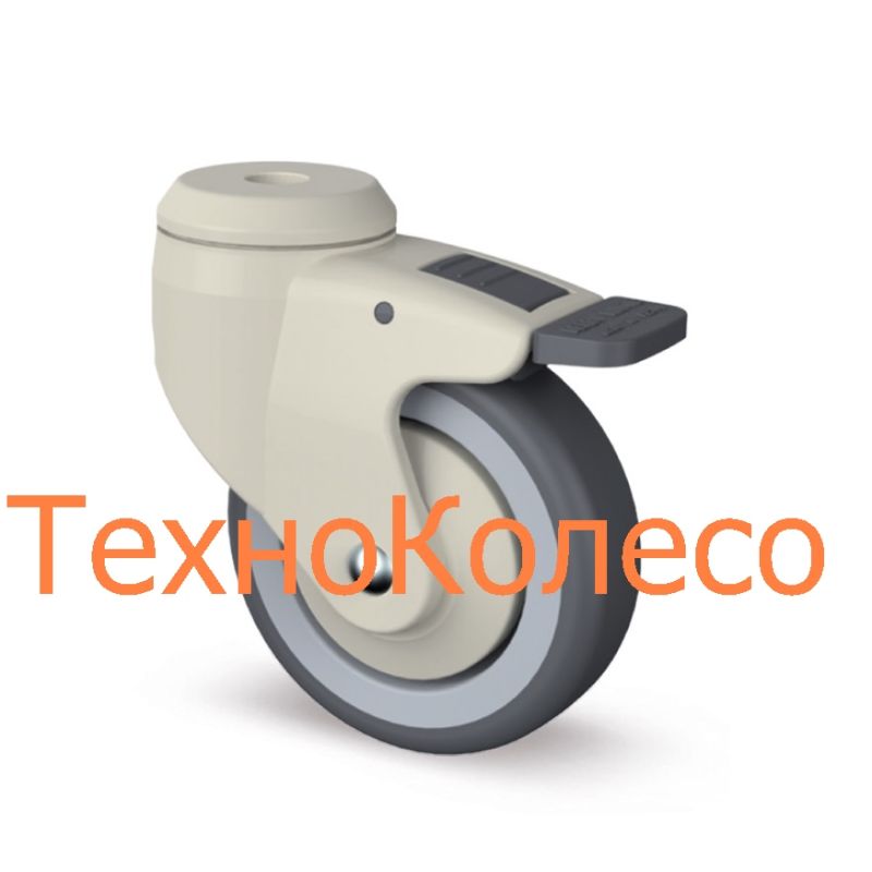Колеса MGO-MGP: основание из полипропилена, контактный слой из серой, не оставляющей следов термопластичной резины (твердость 88 Шор А), втулка скольжения (MGO) или шариковые подшипники в ступице колеса (MGP).