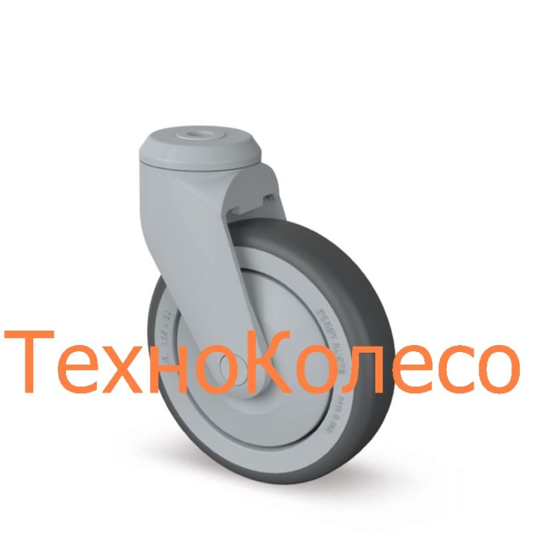 Колеса MGO-MGP: основание колес из полипропилена, контактный слой из серой, не оставляющей следов термопластичной резины (твердость 88 Шор А), втулка скольжения (MGO) или шариковые подшипники (MGP) в ступице колеса.