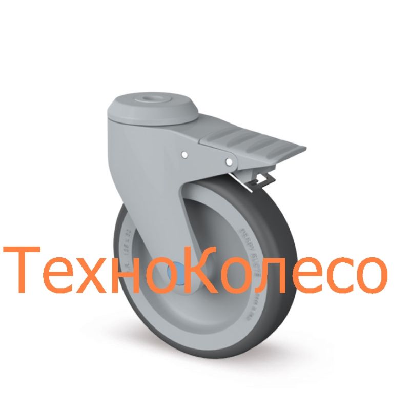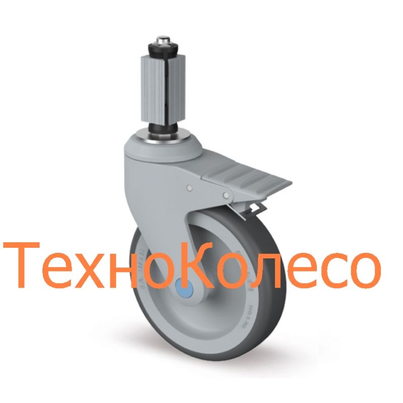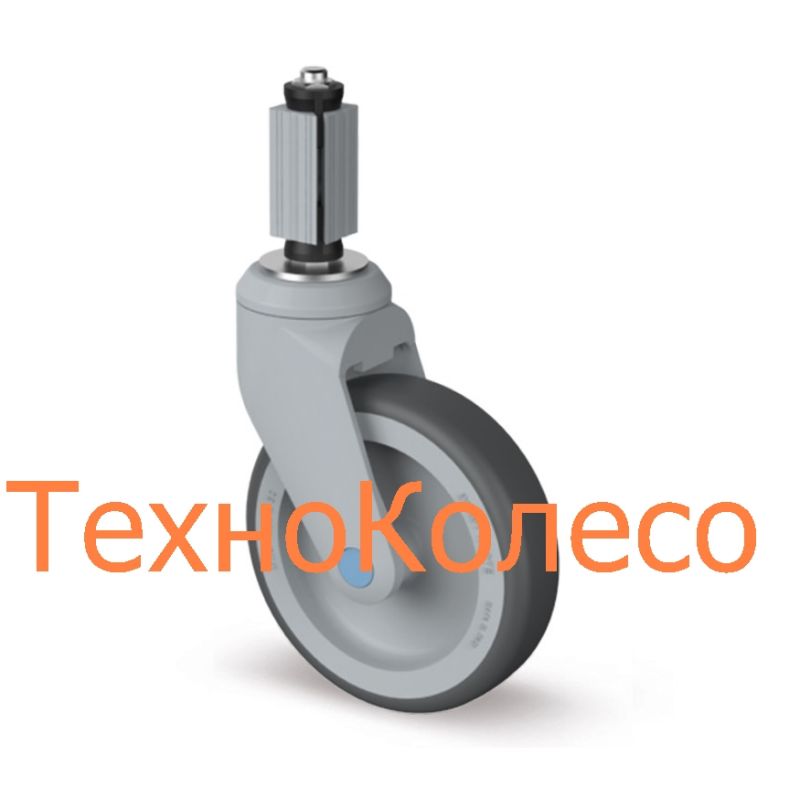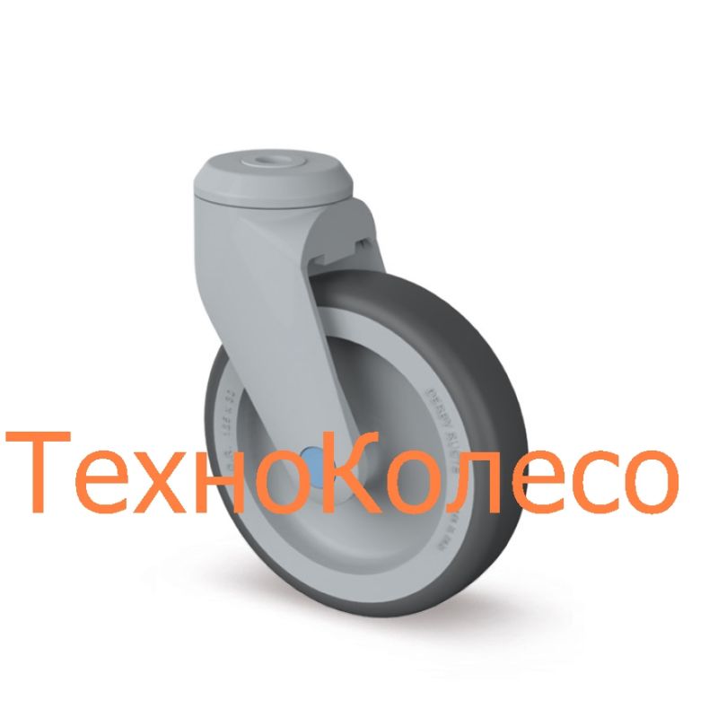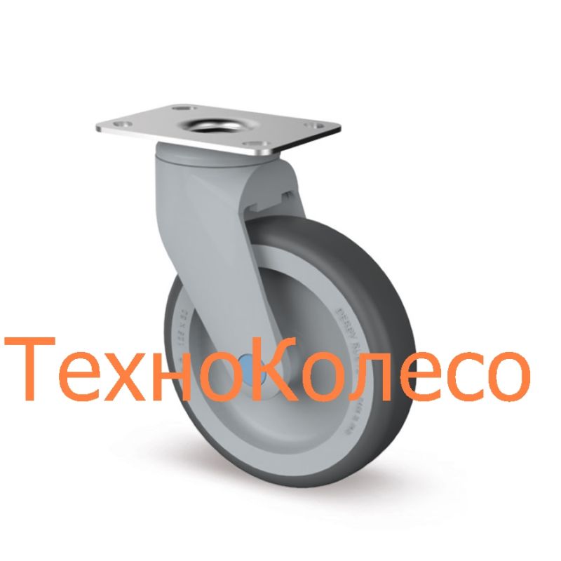 Колеса MGO-MGC: основание колес из полипропилена, контактный слой из серой, не оставляющей следов термопластичной резины (твердость 88 Шор А), втулка скольжения (MGO) или нержавеющий шариковый подшипник в ступице колеса.