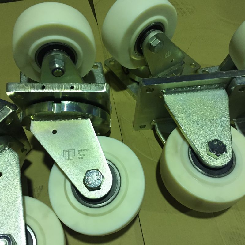 Промышленные поворотные и не поворотные опоры с колесами серии PAG из полиамида марки PEVOLON. Шариковый подшипник в ступице колеса.