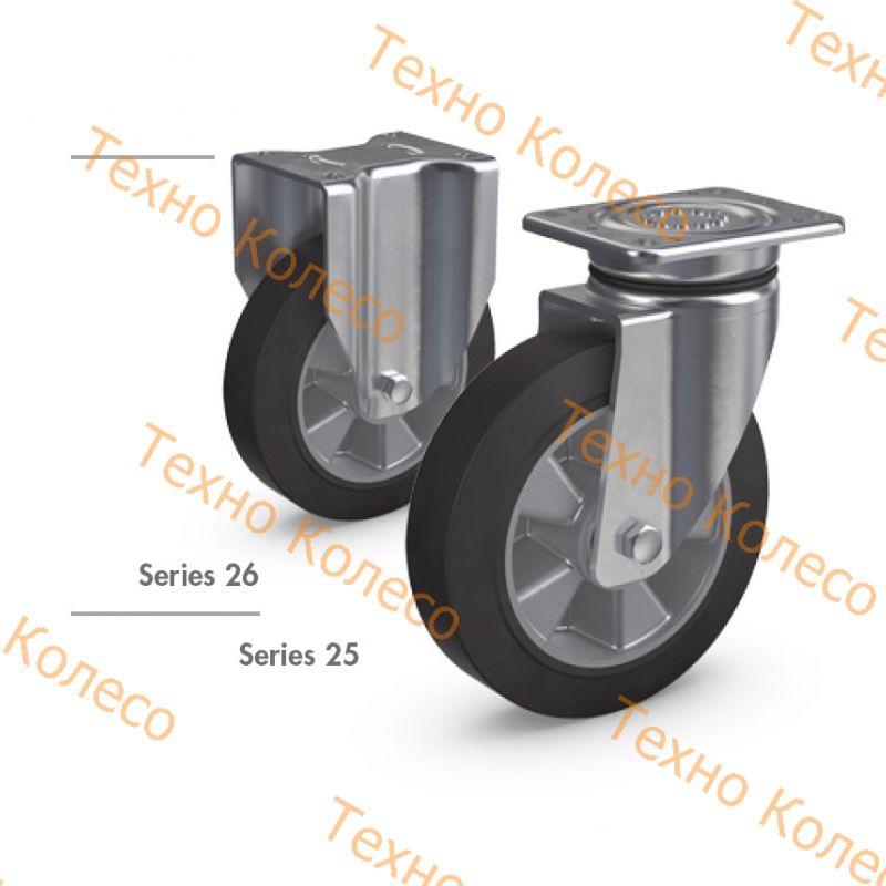 Промышленные колесные опоры серии 25 (поворотные) и 26 (неповротные)